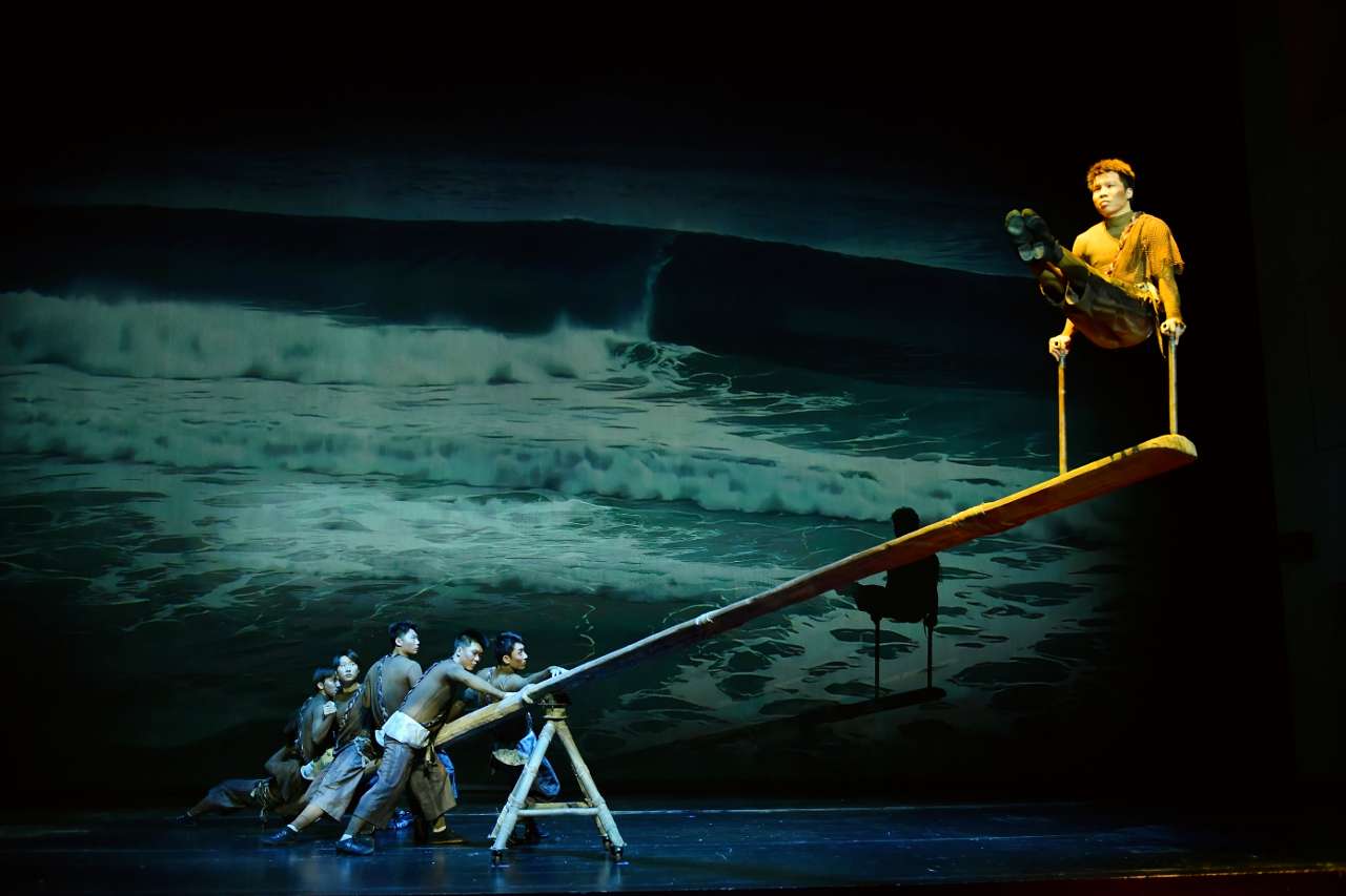 6月16日,由大连杂技团打造的大型原创杂技剧《深蓝的回声》在大连大剧院首演,收获热烈反响。《深蓝的回声》立足大连长海县渔民真实故事,以“向海而生、与海共生”为精神脉络,用杂技艺术生动展现了我国传统渔业迈向现代化海洋牧场的奋斗历程。